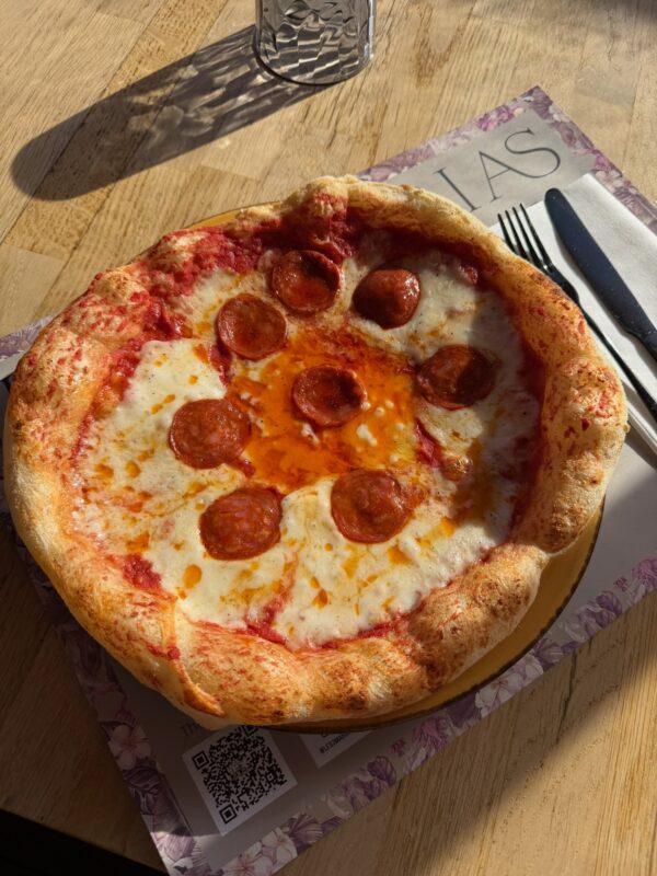 Tomato mozzarella, spicy, juicy salami